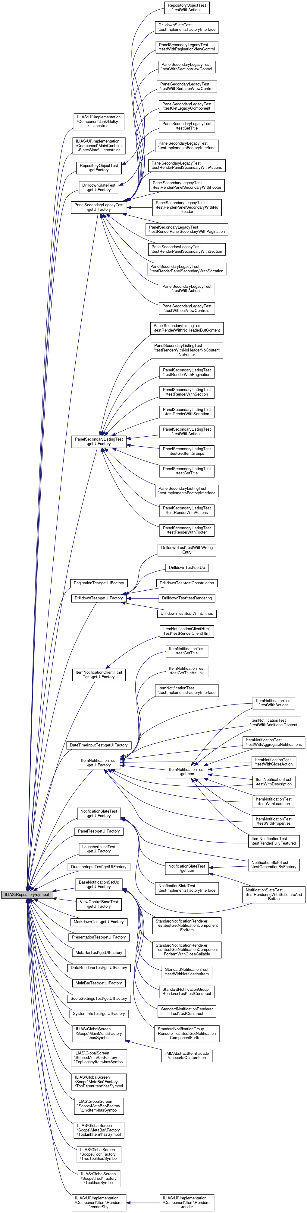 Referenced by ILIAS\UI\Implementation\Component\Link\Bulky\__construct(), ILIAS\UI\Implementation\Component\MainControls\Slate\Slate\__construct(), RepositoryObjectTest\getFactory(), DrilldownSlateTest\getUIFactory(), PanelSecondaryLegacyTest\getUIFactory(), PanelSecondaryListingTest\getUIFactory(), PaginationTest\getUIFactory(), DrilldownTest\getUIFactory(), ItemNotificationClientHtmlTest\getUIFactory(), DateTimeInputTest\getUIFactory(), ItemNotificationTest\getUIFactory(), NotificationSlateTest\getUIFactory(), PanelTest\getUIFactory(), LauncherInlineTest\getUIFactory(), DurationInputTest\getUIFactory(), BaseNotificationSetUp\getUIFactory(), ViewControlBaseTest\getUIFactory(), MarkdownTest\getUIFactory(), PresentationTest\getUIFactory(), MetaBarTest\getUIFactory(), DataRendererTest\getUIFactory(), MainBarTest\getUIFactory(), ScoreSettingsTest\getUIFactory(), SystemInfoTest\getUIFactory(), ILIAS\GlobalScreen\Scope\MainMenu\Factory\hasSymbol(), ILIAS\GlobalScreen\Scope\MetaBar\Factory\TopLegacyItem\hasSymbol(), ILIAS\GlobalScreen\Scope\MetaBar\Factory\TopParentItem\hasSymbol(), ILIAS\GlobalScreen\Scope\MetaBar\Factory\LinkItem\hasSymbol(), ILIAS\GlobalScreen\Scope\MetaBar\Factory\TopLinkItem\hasSymbol(), ILIAS\GlobalScreen\Scope\Tool\Factory\TreeTool\hasSymbol(), ILIAS\GlobalScreen\Scope\Tool\Factory\Tool\hasSymbol(), and ILIAS\UI\Implementation\Component\Item\Renderer\renderShy().
