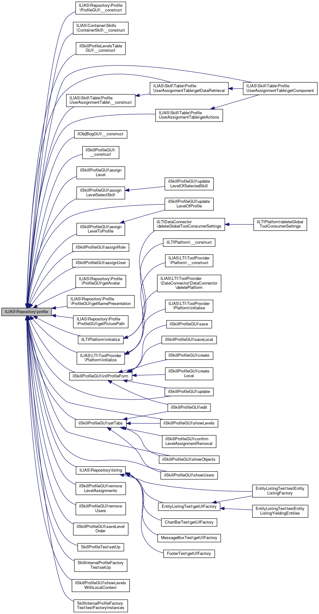 Referenced by ILIAS\Repository\Profile\ProfileGUI\__construct(), ILIAS\Container\Skills\ContainerSkill\__construct(), ilSkillProfileLevelsTableGUI\__construct(), ILIAS\Skill\Table\ProfileUserAssignmentTable\__construct(), ilObjBlogGUI\__construct(), ilSkillProfileGUI\__construct(), ilSkillProfileGUI\assignLevel(), ilSkillProfileGUI\assignLevelSelectSkill(), ilSkillProfileGUI\assignLevelToProfile(), ilSkillProfileGUI\assignRole(), ilSkillProfileGUI\assignUser(), ILIAS\Skill\Table\ProfileUserAssignmentTable\getActions(), ILIAS\Repository\Profile\ProfileGUI\getAvatar(), ILIAS\Skill\Table\ProfileUserAssignmentTable\getComponent(), ILIAS\Skill\Table\ProfileUserAssignmentTable\getDataRetrieval(), ILIAS\Repository\Profile\ProfileGUI\getNamePresentation(), ILIAS\Repository\Profile\ProfileGUI\getPicturePath(), ilLTIPlatform\initialize(), ILIAS\LTI\ToolProvider\Platform\initialize(), ilSkillProfileGUI\initProfileForm(), ILIAS\Repository\listing(), ilSkillProfileGUI\removeLevelAssignments(), ilSkillProfileGUI\removeUsers(), ilSkillProfileGUI\saveLevelOrder(), ilSkillProfileGUI\setTabs(), SkillProfileTest\setUp(), SkillInternalProfileFactoryTest\setUp(), ilSkillProfileGUI\showLevels(), ilSkillProfileGUI\showLevelsWithLocalContext(), ilSkillProfileGUI\showObjects(), ilSkillProfileGUI\showUsers(), SkillInternalProfileFactoryTest\testFactoryInstances(), ilSkillProfileGUI\update(), and ilSkillProfileGUI\updateLevelOfProfile().