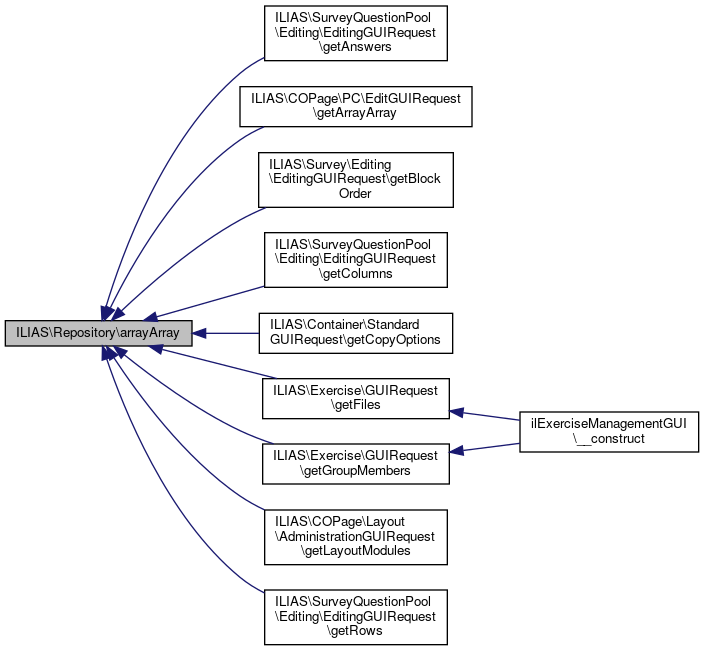Referenced by ILIAS\Style\Content\StandardGUIRequest\getAllCharacteristics(), ILIAS\Container\StandardGUIRequest\getAlreadyRenderedRefIds(), ILIAS\MediaObjects\ImageMap\ImageMapGUIRequest\getArea(), ILIAS\Style\Content\StandardGUIRequest\getCharacteristics(), ILIAS\Multilingualism\StandardGUIRequest\getCheck(), ILIAS\Survey\Editing\EditingGUIRequest\getCodeIds(), ILIAS\Survey\Editing\EditingGUIRequest\getCodes(), ILIAS\Survey\Editing\EditingGUIRequest\getCodesPar(), ILIAS\Style\Content\StandardGUIRequest\getColors(), ILIAS\Wiki\WikiGUIRequest\getComments(), ILIAS\Style\Content\StandardGUIRequest\getConflictAction(), ILIAS\BookingManager\StandardGUIRequest\getDates(), ILIAS\Multilingualism\StandardGUIRequest\getDescriptions(), ILIAS\LearningModule\Editing\EditingGUIRequest\getExportIds(), ILIAS\Table\TableGUIRequest\getFF(), ILIAS\MediaObjects\SubTitles\SubtitlesGUIRequest\getFiles(), ILIAS\Glossary\Editing\EditingGUIRequest\getFiles(), ILIAS\MediaPool\StandardGUIRequest\getFiles(), ILIAS\Style\Content\StandardGUIRequest\getFiles(), ILIAS\SurveyQuestionPool\Editing\EditingGUIRequest\getFiles(), ILIAS\Table\TableGUIRequest\getFS(), ILIAS\Style\Content\StandardGUIRequest\getHidden(), ILIAS\Test\InternalRequestService\getIds(), ILIAS\Survey\Editing\EditingGUIRequest\getIds(), ILIAS\COPage\Page\EditGUIRequest\getIds(), ILIAS\TestQuestionPool\InternalRequestService\getIds(), ILIAS\Survey\Editing\EditingGUIRequest\getIncludeElements(), ILIAS\Exercise\GUIRequest\getInstructionFilesToDelete(), ILIAS\MediaPool\Clipboard\ClipboardGUIRequest\getItemIds(), ILIAS\LearningModule\Presentation\PresentationGUIRequest\getItems(), ILIAS\Multilingualism\StandardGUIRequest\getLanguages(), ILIAS\COPage\Layout\AdministrationGUIRequest\getLayoutTypes(), ILIAS\Exercise\GUIRequest\getLearningComments(), ILIAS\Exercise\GUIRequest\getListedIdlIDs(), ILIAS\Wiki\WikiGUIRequest\getMarks(), ILIAS\Exercise\GUIRequest\getMarks(), ILIAS\SurveyQuestionPool\Editing\EditingGUIRequest\getNeutral(), ILIAS\Portfolio\StandardGUIRequest\getObjIds(), ILIAS\Portfolio\StandardGUIRequest\getOnline(), ILIAS\Survey\Editing\EditingGUIRequest\getOrder(), ILIAS\Style\Content\StandardGUIRequest\getOrder(), ILIAS\Survey\Editing\EditingGUIRequest\getRaterIds(), ILIAS\BookingManager\StandardGUIRequest\getReservationIds(), ILIAS\Portfolio\StandardGUIRequest\getRoleTemplateIds(), ILIAS\LearningModule\Editing\EditingGUIRequest\getScreenIds(), ILIAS\LearningModule\Editing\EditingGUIRequest\getShortTitles(), ILIAS\SurveyQuestionPool\Editing\EditingGUIRequest\getSort(), ILIAS\MediaObjects\SubTitles\SubtitlesGUIRequest\getSrtFiles(), ILIAS\Wiki\WikiGUIRequest\getStatus(), ILIAS\Exercise\GUIRequest\getStatus(), ILIAS\COPage\PC\EditGUIRequest\getStringArray(), ILIAS\COPage\Page\EditGUIRequest\getStringArray(), ILIAS\Survey\Editing\EditingGUIRequest\getThresholds(), ILIAS\Multilingualism\StandardGUIRequest\getTitles(), ILIAS\Portfolio\StandardGUIRequest\getTitles(), ILIAS\Style\Content\StandardGUIRequest\getTitles(), ILIAS\LearningModule\Editing\EditingGUIRequest\getTitles(), ILIAS\LearningModule\Editing\EditingGUIRequest\getTooltipIds(), ILIAS\LearningModule\Editing\EditingGUIRequest\getTooltipTexts(), ILIAS\Exercise\GUIRequest\getTutorNotices(), ILIAS\Survey\Editing\EditingGUIRequest\getUserIds(), and ILIAS\LearningModule\Editing\EditingGUIRequest\getUserQuestionIds().
