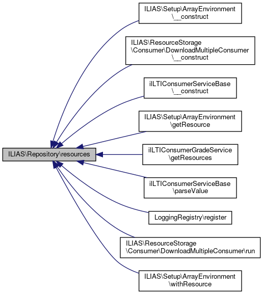 Here is the caller graph for this function:| ILIAS\Repository\resources | ( | ) |