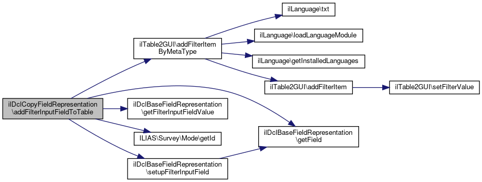 References ilTable2GUI\addFilterItemByMetaType(), ilTable2GUI\FILTER_TEXT, ilDclBaseFieldRepresentation\getField(), ilDclBaseFieldRepresentation\getFilterInputFieldValue(), ILIAS\Survey\Mode\getId(), and ilDclBaseFieldRepresentation\setupFilterInputField().