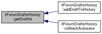 Here is the caller graph for this function:| ilForumDraftsHistory::getLastAutosaveByDraftId | ( | int | $draft_id | ) |