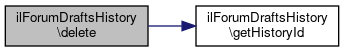 Here is the call graph for this function:| ilForumDraftsHistory::delete | ( | ) |