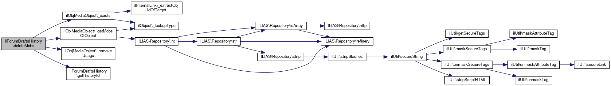 Here is the call graph for this function:| ilForumDraftsHistory::deleteMobs | ( | ) |
