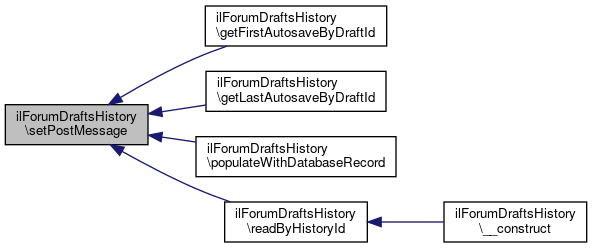 Here is the caller graph for this function:| ilForumDraftsHistory::setPostMessage | ( | string | $post_message | ) |
