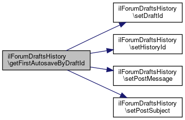 Here is the caller graph for this function:| ilForumDraftsHistory::getFirstAutosaveByDraftId | ( | int | $draft_id | ) |
