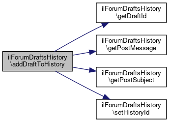 Here is the call graph for this function:| ilForumDraftsHistory::addDraftToHistory | ( | ) |