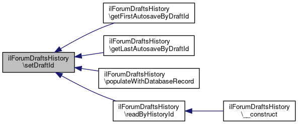 Here is the caller graph for this function:| ilForumDraftsHistory::setDraftId | ( | int | $draft_id | ) |