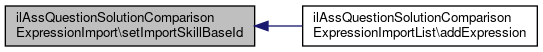 Here is the caller graph for this function:| ilAssQuestionSolutionComparisonExpressionImport::setImportSkillBaseId | ( | $importSkillBaseId | ) |