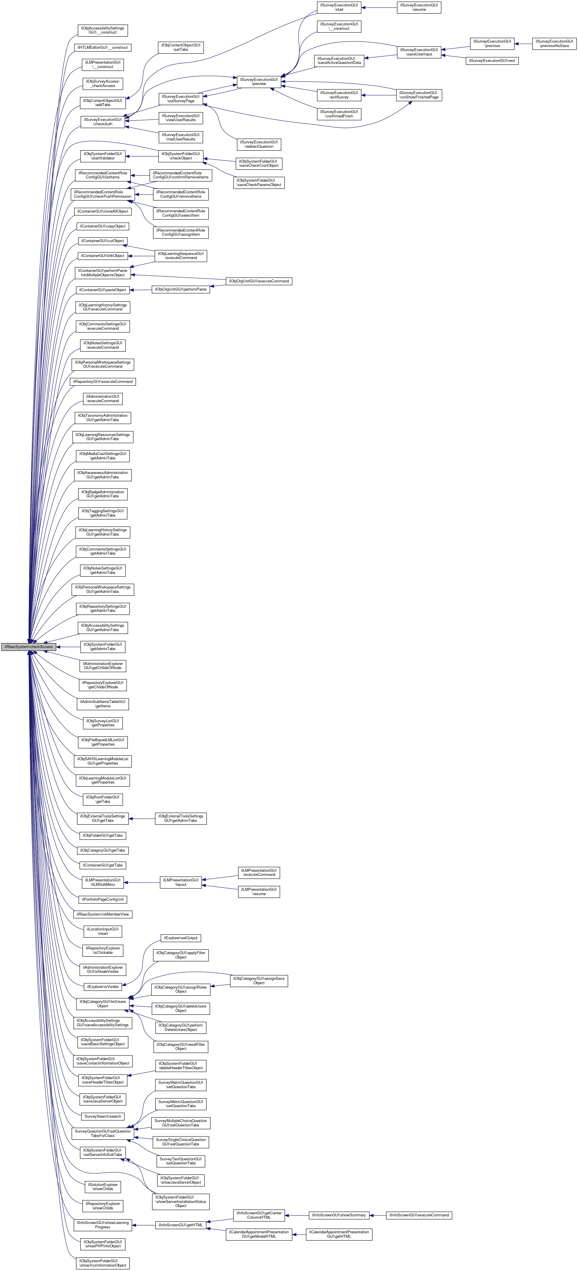 Referenced by ilObjAccessibilitySettingsGUI\__construct(), ilHTLMEditorGUI\__construct(), ilLMPresentationGUI\__construct(), ilObjSurveyAccess\_checkAccess(), ilObjContentObjectGUI\addTabs(), ilSurveyExecutionGUI\checkAuth(), ilObjSystemFolderGUI\checkObject(), ilRecommendedContentRoleConfigGUI\checkPushPermission(), ilContainerGUI\cloneAllObject(), ilContainerGUI\copyObject(), ilContainerGUI\cutObject(), ilObjLearningHistorySettingsGUI\executeCommand(), ilObjCommentsSettingsGUI\executeCommand(), ilObjNotesSettingsGUI\executeCommand(), ilObjPersonalWorkspaceSettingsGUI\executeCommand(), ilRepositoryGUI\executeCommand(), ilAdministrationGUI\executeCommand(), ilObjTaxonomyAdministrationGUI\getAdminTabs(), ilObjLearningResourcesSettingsGUI\getAdminTabs(), ilObjMediaCastSettingsGUI\getAdminTabs(), ilObjAwarenessAdministrationGUI\getAdminTabs(), ilObjBadgeAdministrationGUI\getAdminTabs(), ilObjTaggingSettingsGUI\getAdminTabs(), ilObjLearningHistorySettingsGUI\getAdminTabs(), ilObjCommentsSettingsGUI\getAdminTabs(), ilObjNotesSettingsGUI\getAdminTabs(), ilObjPersonalWorkspaceSettingsGUI\getAdminTabs(), ilObjRepositorySettingsGUI\getAdminTabs(), ilObjAccessibilitySettingsGUI\getAdminTabs(), ilObjSystemFolderGUI\getAdminTabs(), ilAdministrationExplorerGUI\getChildsOfNode(), ilRepositoryExplorerGUI\getChildsOfNode(), ilAdminSubItemsTableGUI\getItems(), ilObjSurveyListGUI\getProperties(), ilObjFileBasedLMListGUI\getProperties(), ilObjSAHSLearningModuleListGUI\getProperties(), ilObjLearningModuleListGUI\getProperties(), ilObjRootFolderGUI\getTabs(), ilObjExternalToolsSettingsGUI\getTabs(), ilObjFolderGUI\getTabs(), ilObjCategoryGUI\getTabs(), ilContainerGUI\getTabs(), ilLMPresentationGUI\ilLMSubMenu(), ilPortfolioPageConfig\init(), initMemberView(), ilLocationInputGUI\insert(), ilRepositoryExplorer\isClickable(), ilAdministrationExplorerGUI\isNodeVisible(), ilExplorer\isVisible(), ilContainerGUI\linkObject(), ilRecommendedContentRoleConfigGUI\listItems(), ilObjCategoryGUI\listUsersObject(), ilContainerGUI\pasteObject(), ilContainerGUI\performPasteIntoMultipleObjectsObject(), ilObjAccessibilitySettingsGUI\saveAccessibilitySettings(), ilObjSystemFolderGUI\saveBasicSettingsObject(), ilObjSystemFolderGUI\saveContactInformationObject(), ilObjSystemFolderGUI\saveHeaderTitlesObject(), ilObjSystemFolderGUI\saveJavaServerObject(), SurveySearch\search(), SurveyQuestionGUI\setQuestionTabsForClass(), ilObjSystemFolderGUI\setServerInfoSubTabs(), ilSolutionExplorer\showChilds(), ilRepositoryExplorer\showChilds(), ilInfoScreenGUI\showLearningProgress(), ilObjSystemFolderGUI\showPHPInfoObject(), ilObjSystemFolderGUI\showServerInstallationStatusObject(), ilObjSystemFolderGUI\showVcsInformationObject(), and ilObjSystemFolderGUI\startValidator().