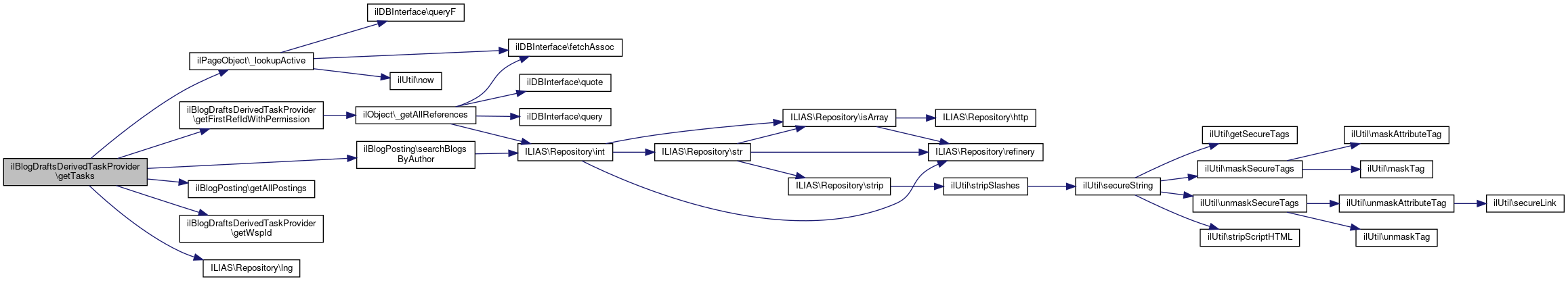 Here is the caller graph for this function:| ilBlogDraftsDerivedTaskProvider::getTasks | ( | int | $user_id | ) |