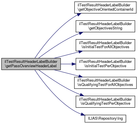 Here is the call graph for this function:| ilTestResultHeaderLabelBuilder::getPassOverviewHeaderLabel | ( | ) |