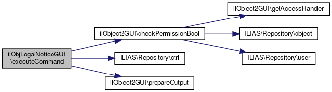 Here is the call graph for this function:| ilObjLegalNoticeGUI::executeCommand | ( | ) |