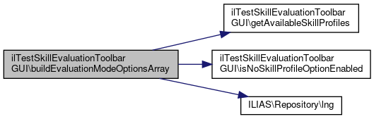 References ilToolbarGUI\addFormButton(), ilToolbarGUI\addInputItem(), buildEvaluationModeOptionsArray(), ilTestSkillEvaluationGUI\CMD_SHOW, ILIAS\Repository\ctrl(), getSelectedEvaluationMode(), ILIAS\Repository\lng(), ilToolbarGUI\setFormAction(), ilSelectInputGUI\setOptions(), and ilTestSkillEvaluationGUI\SKILL_PROFILE_PARAM.