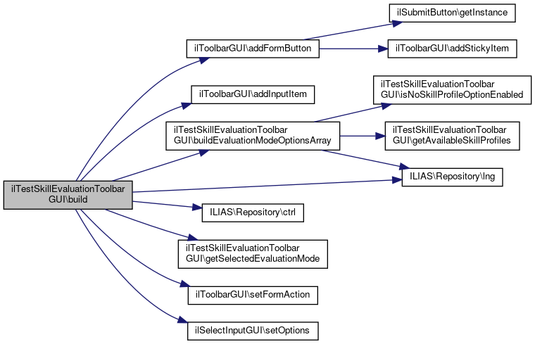 Here is the call graph for this function:| ilTestSkillEvaluationToolbarGUI::build | ( | ) |