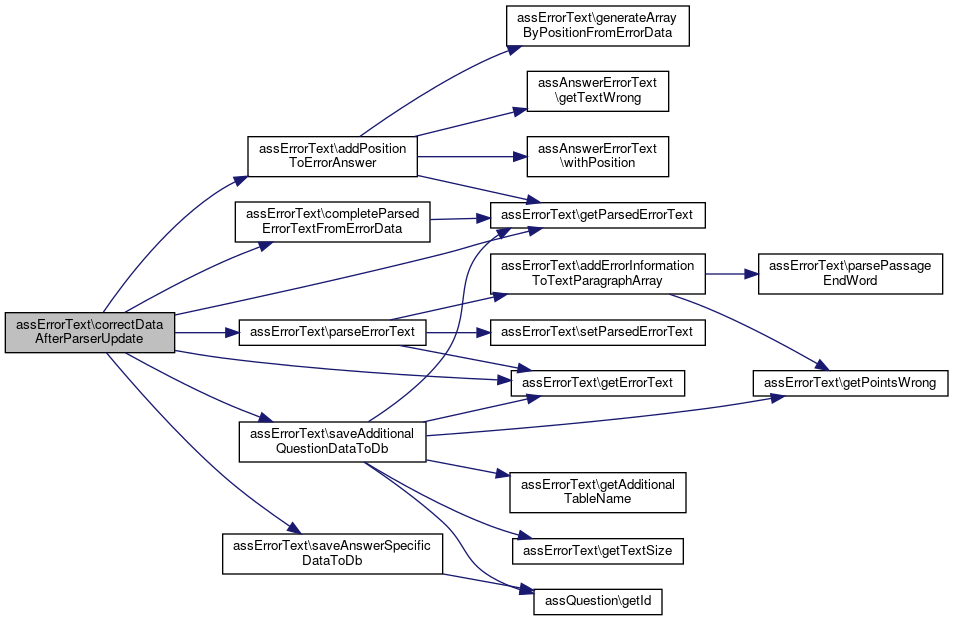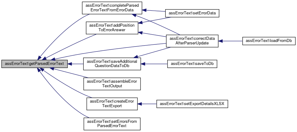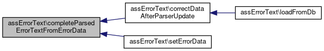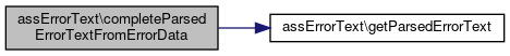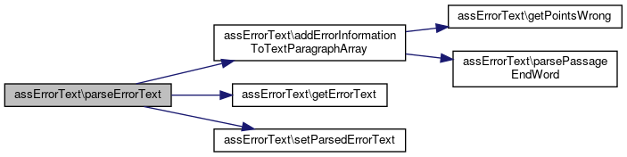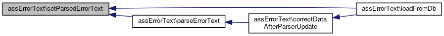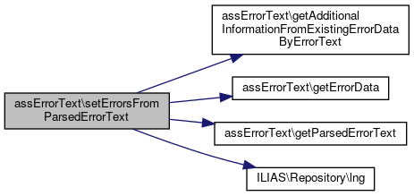 Here is the call graph for this function:| assErrorText::setParsedErrorText | ( | array | $parsed_errortext | ) |