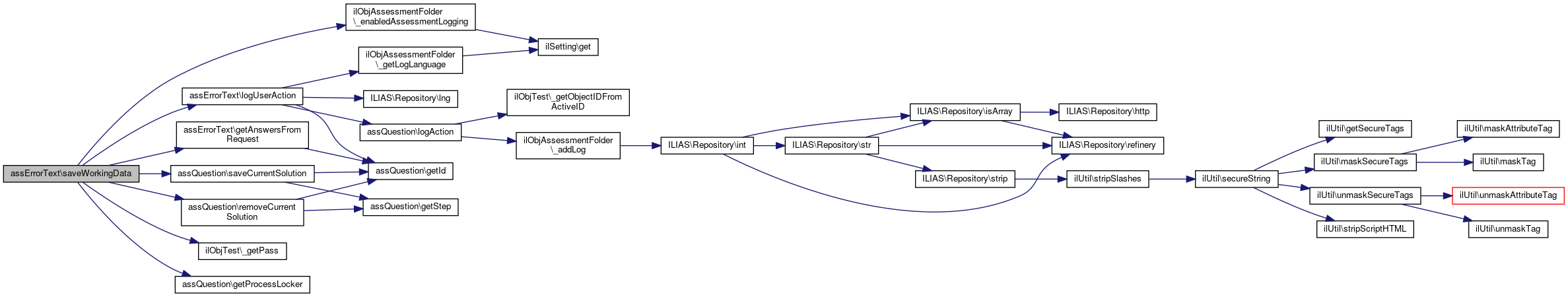 Here is the call graph for this function:| assErrorText::saveWorkingData | ( | $active_id, | |