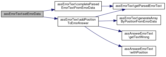 Here is the call graph for this function:| assErrorText::setErrorData | ( | array | $errors | ) |