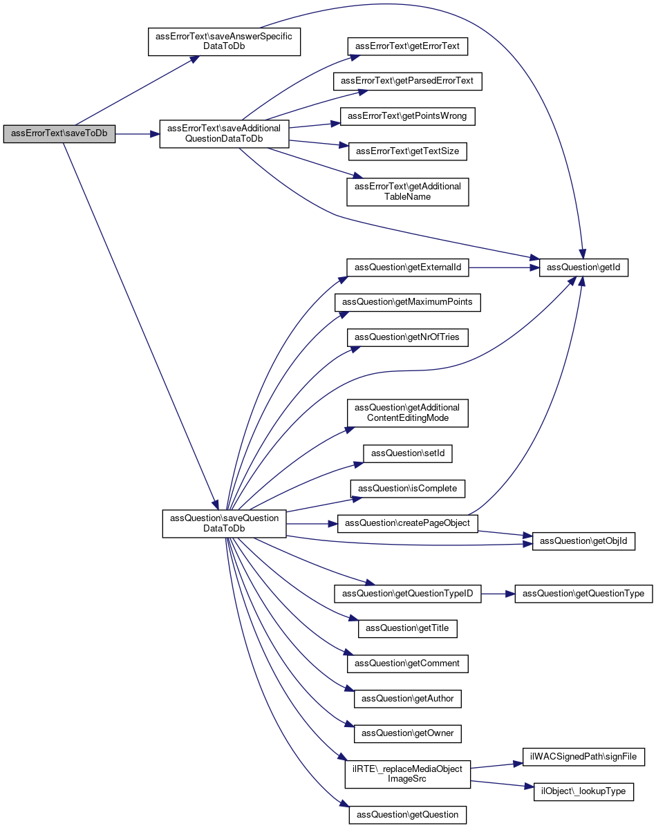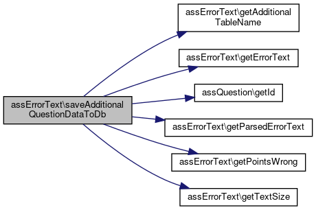 Here is the call graph for this function:| assErrorText::saveAdditionalQuestionDataToDb | ( | ) |