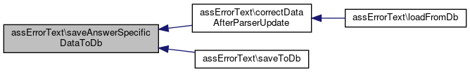 Here is the caller graph for this function:| assErrorText::saveAnswerSpecificDataToDb | ( | ) |