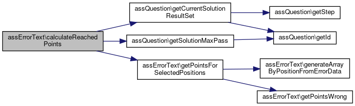 | calculateReachedPoints ($active_id, $pass=null, $authorizedSolution=true, $returndetails=false) | |