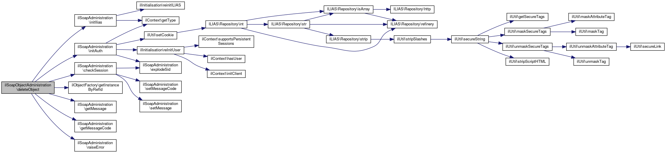 Here is the call graph for this function:| ilSoapObjectAdministration::deleteObject | ( | string | $sid, |