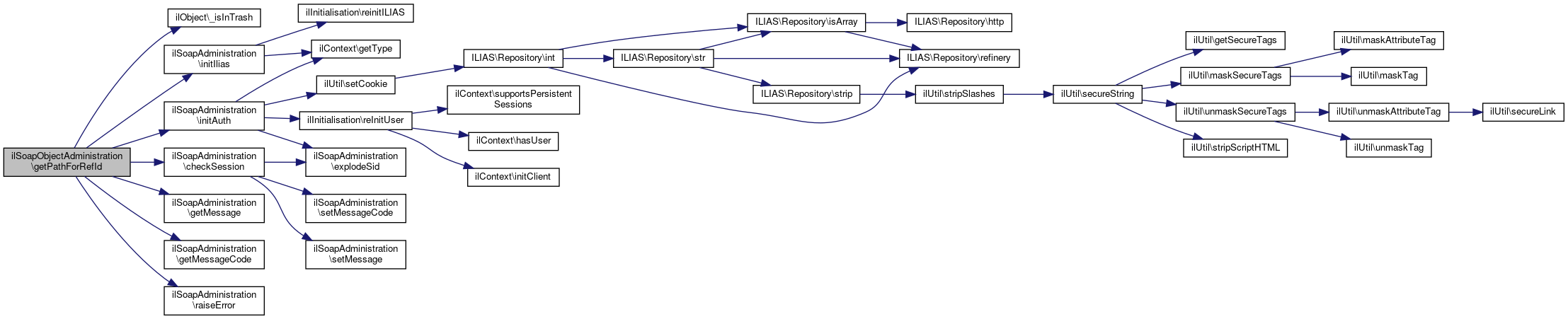 Here is the call graph for this function:| ilSoapObjectAdministration::getPathForRefId | ( | string | $sid, |