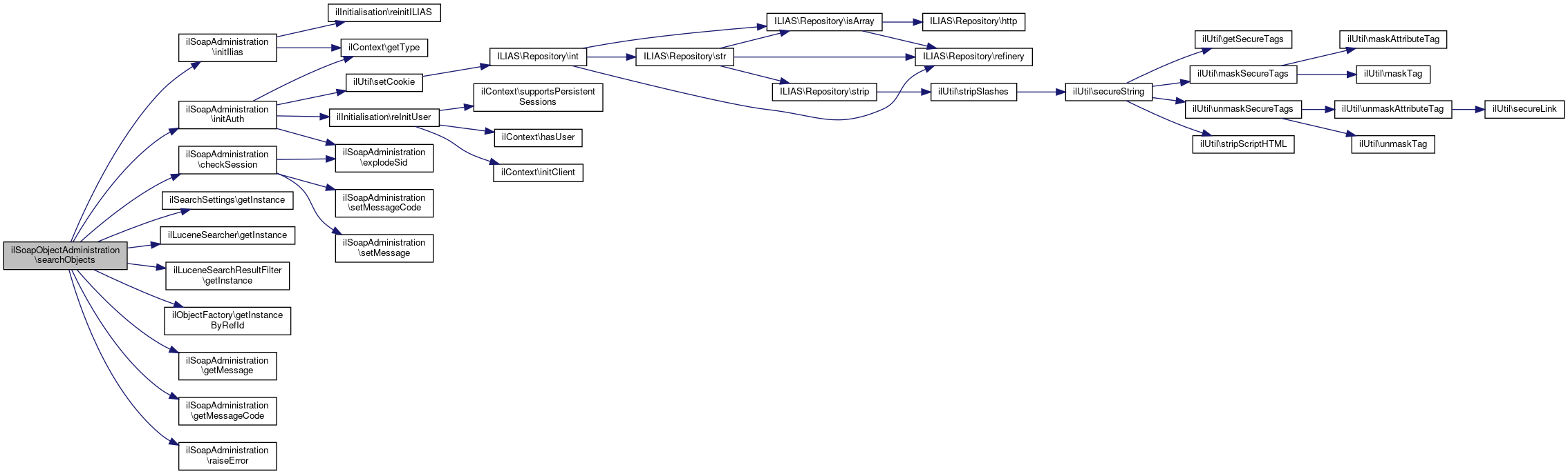 Here is the call graph for this function:| ilSoapObjectAdministration::searchObjects | ( | string | $sid, |
