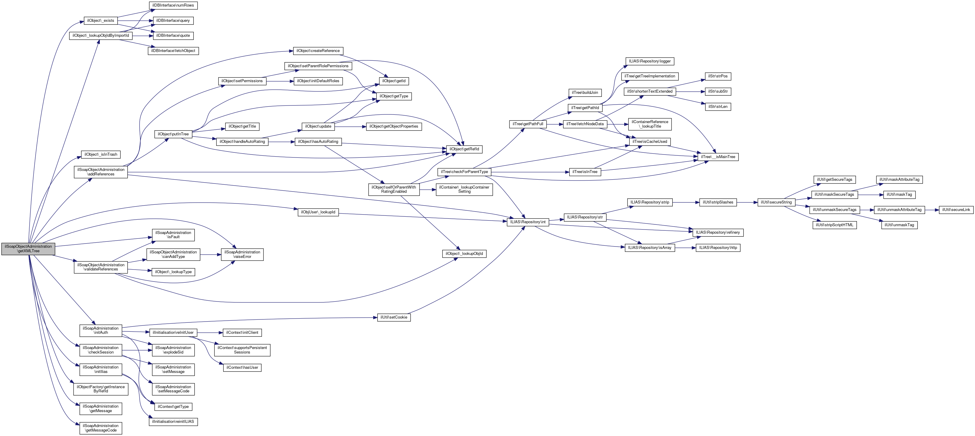 Here is the call graph for this function:| ilSoapObjectAdministration::getXMLTree | ( | string | $sid, |