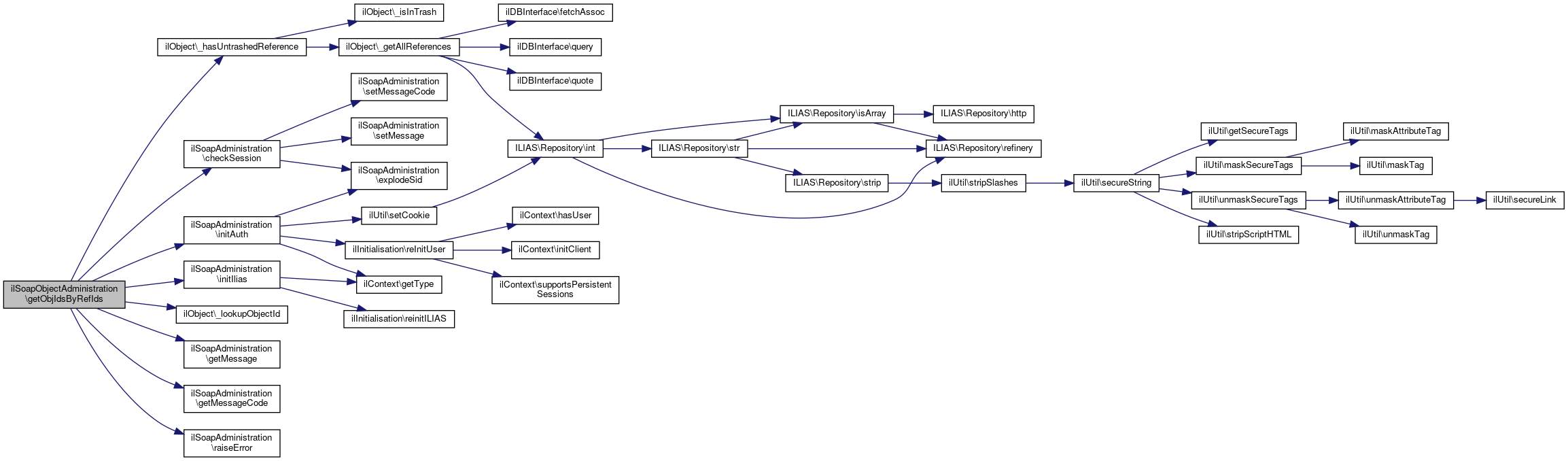 Here is the call graph for this function:| ilSoapObjectAdministration::getRefIdsByObjId | ( | string | $sid, |