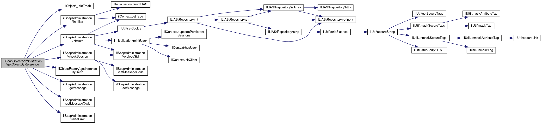 Here is the call graph for this function:| ilSoapObjectAdministration::getObjectByReference | ( | string | $sid, |