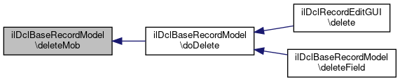 Here is the call graph for this function:| ilDclBaseRecordModel::deleteMob | ( | int | $obj_id | ) |