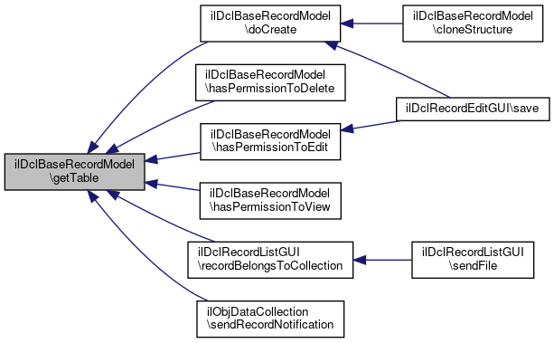 Here is the call graph for this function:| ilDclBaseRecordModel::getTable | ( | ) |