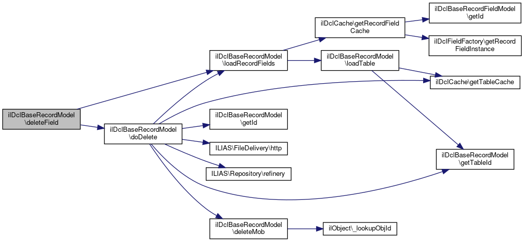 Here is the call graph for this function:| ilDclBaseRecordModel::deleteField | ( | int | $field_id | ) |