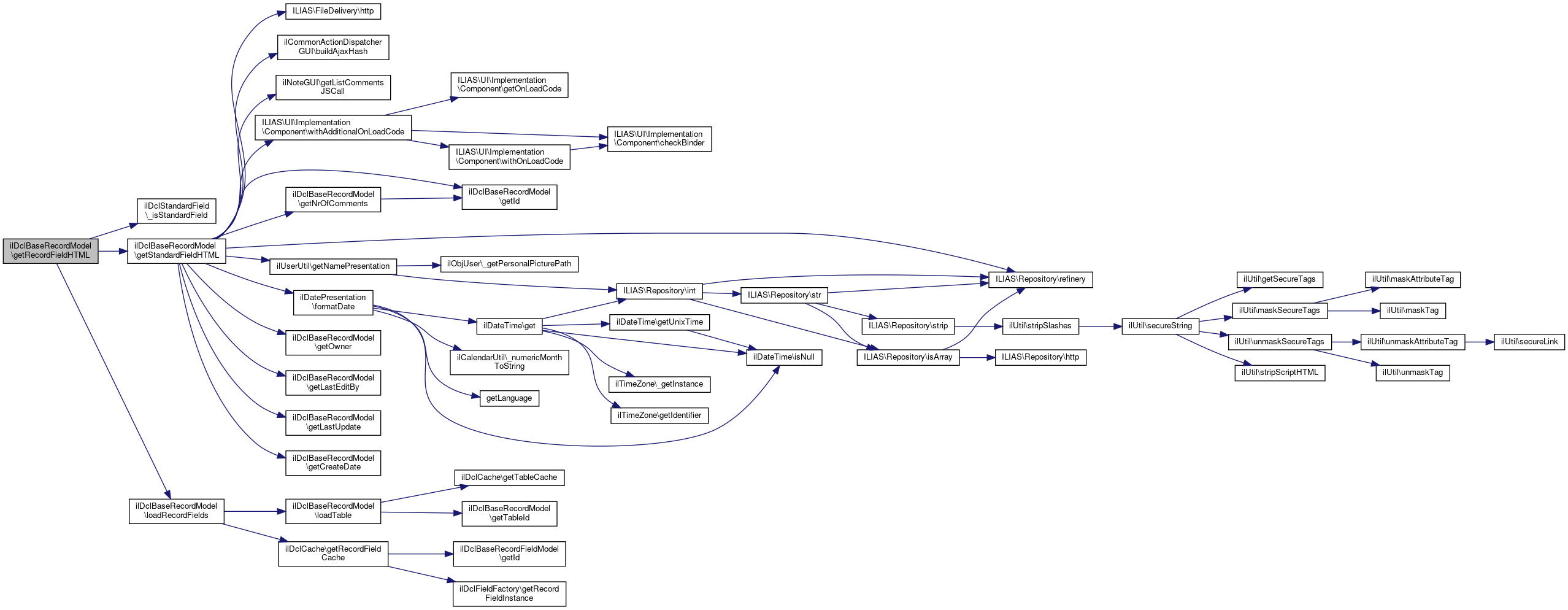 Here is the caller graph for this function:| ilDclBaseRecordModel::getStandardFieldHTML | ( | string | $field_id, |