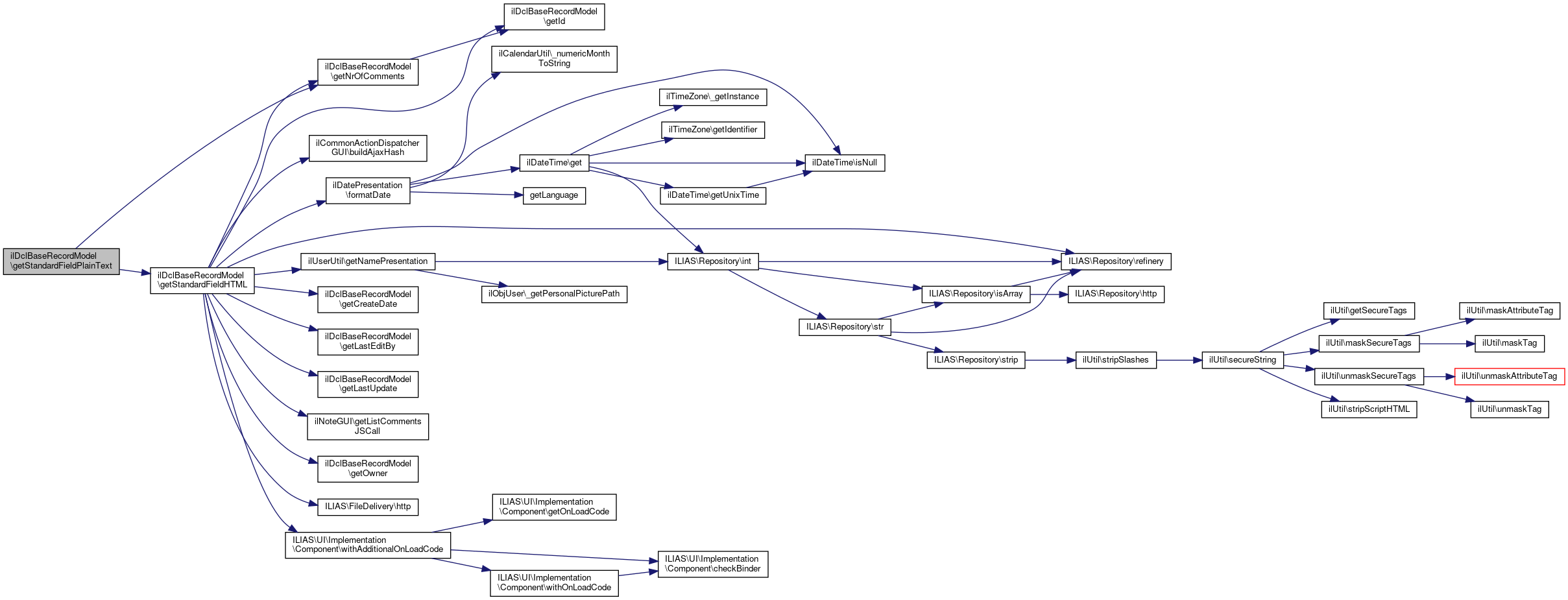 Here is the caller graph for this function:| ilDclBaseRecordModel::getStandardFieldPlainText | ( | string | $field_id | ) |