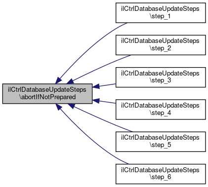Here is the call graph for this function:| ilCtrlDatabaseUpdateSteps::step_6 | ( | ) |
