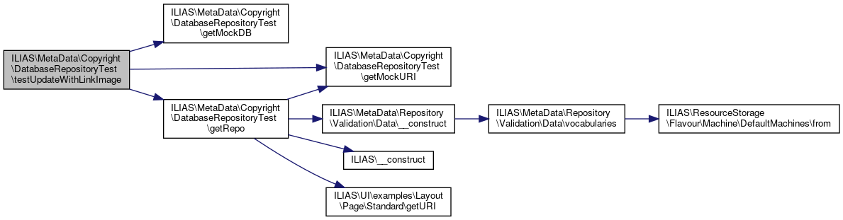 Here is the call graph for this function:| ILIAS\MetaData\Copyright\DatabaseRepositoryTest::testUpdateWithLinkImage | ( | ) |