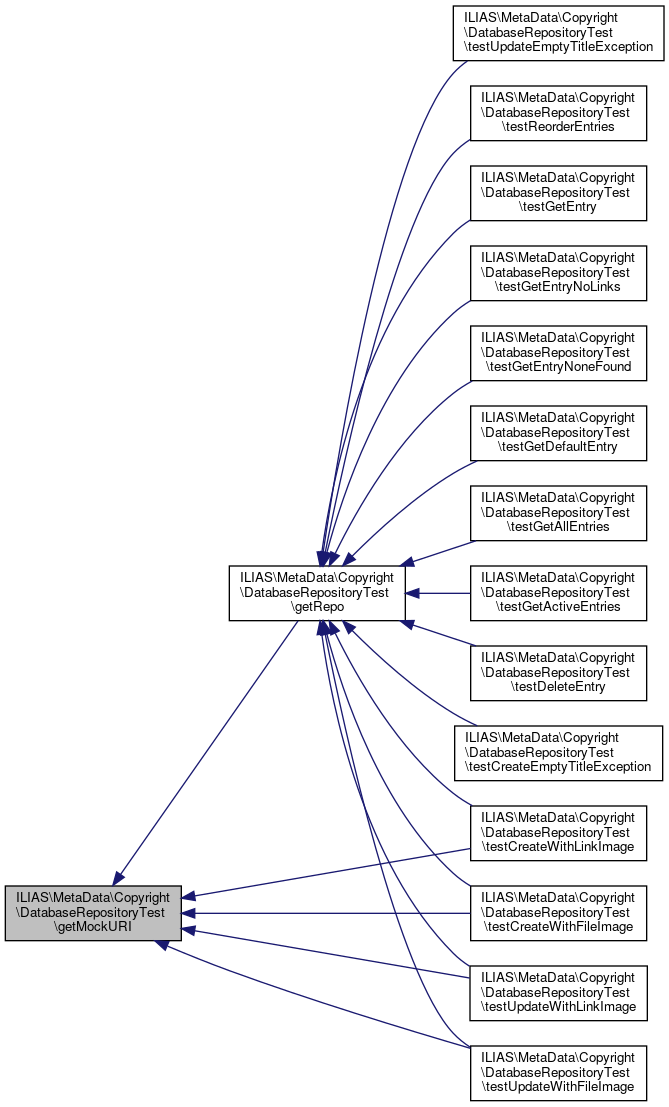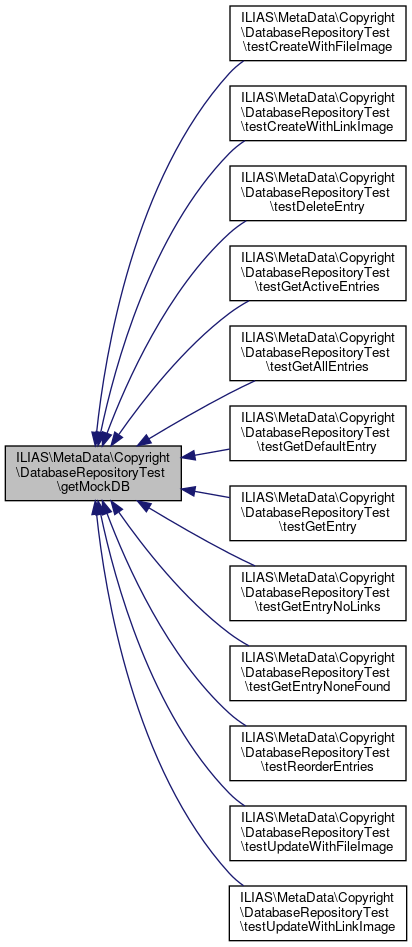 Referenced by ILIAS\MetaData\Copyright\DatabaseRepositoryTest\testCreateWithFileImage(), ILIAS\MetaData\Copyright\DatabaseRepositoryTest\testCreateWithLinkImage(), ILIAS\MetaData\Copyright\DatabaseRepositoryTest\testDeleteEntry(), ILIAS\MetaData\Copyright\DatabaseRepositoryTest\testGetActiveEntries(), ILIAS\MetaData\Copyright\DatabaseRepositoryTest\testGetAllEntries(), ILIAS\MetaData\Copyright\DatabaseRepositoryTest\testGetDefaultEntry(), ILIAS\MetaData\Copyright\DatabaseRepositoryTest\testGetEntry(), ILIAS\MetaData\Copyright\DatabaseRepositoryTest\testGetEntryNoLinks(), ILIAS\MetaData\Copyright\DatabaseRepositoryTest\testGetEntryNoneFound(), ILIAS\MetaData\Copyright\DatabaseRepositoryTest\testReorderEntries(), ILIAS\MetaData\Copyright\DatabaseRepositoryTest\testUpdateWithFileImage(), and ILIAS\MetaData\Copyright\DatabaseRepositoryTest\testUpdateWithLinkImage().