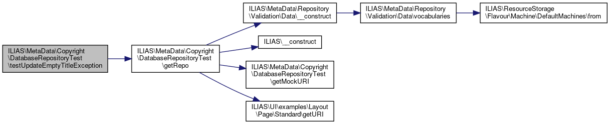 Here is the call graph for this function:| ILIAS\MetaData\Copyright\DatabaseRepositoryTest::testUpdateEmptyTitleException | ( | ) |
