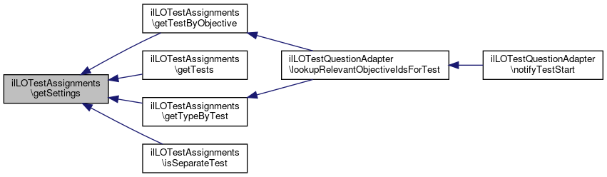 Here is the caller graph for this function:| ilLOTestAssignments::getSettings | ( | ) |