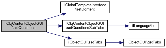 Here is the call graph for this function:| ilObjContentObjectGUI::setQuestionsSubTabs | ( | string | $a_active | ) |