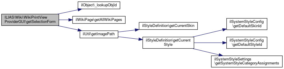 Here is the call graph for this function:| ILIAS\Wiki\WikiPrintViewProviderGUI::getSelectionForm | ( | ) |