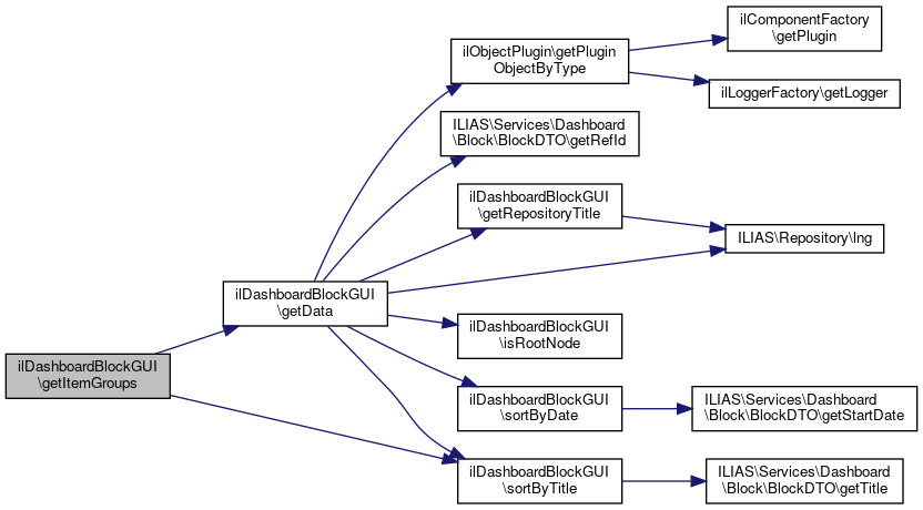 Here is the caller graph for this function:| ilDashboardBlockGUI::getItemGroups | ( | ) |