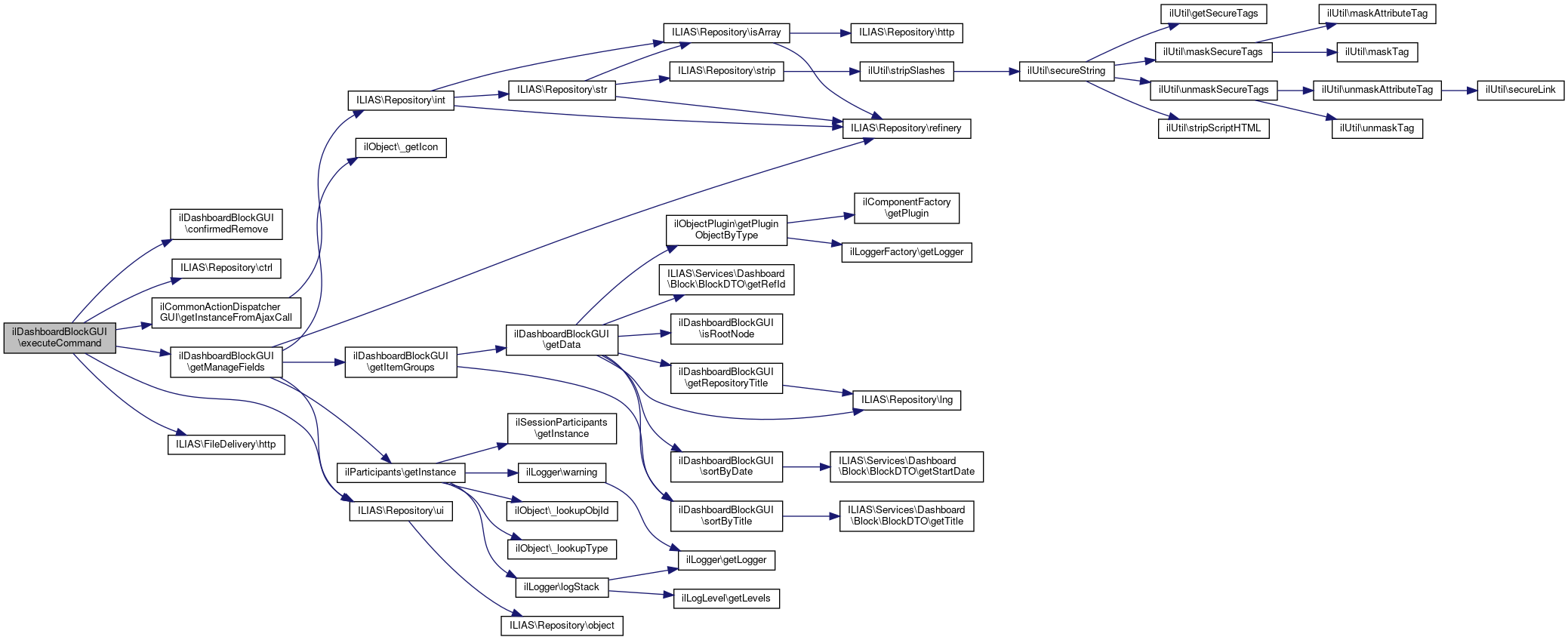 Here is the caller graph for this function:| ilDashboardBlockGUI::executeCommand | ( | ) |