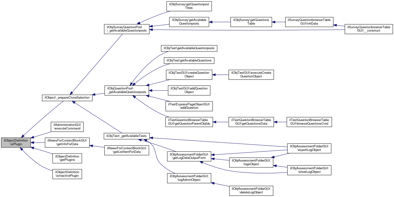 Here is the call graph for this function:| ilObjectDefinition::isPlugin | ( | string | $obj_name | ) |