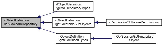 Here is the caller graph for this function:| ilObjectDefinition::isAllowedInRepository | ( | string | $obj_name | ) |