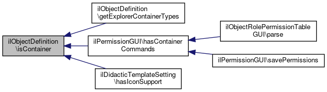 Here is the caller graph for this function:| ilObjectDefinition::isContainer | ( | string | $obj_name | ) |