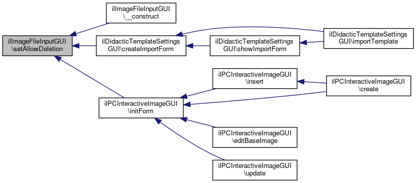Here is the caller graph for this function:| ilImageFileInputGUI::setAllowDeletion | ( | bool | $a_val | ) |