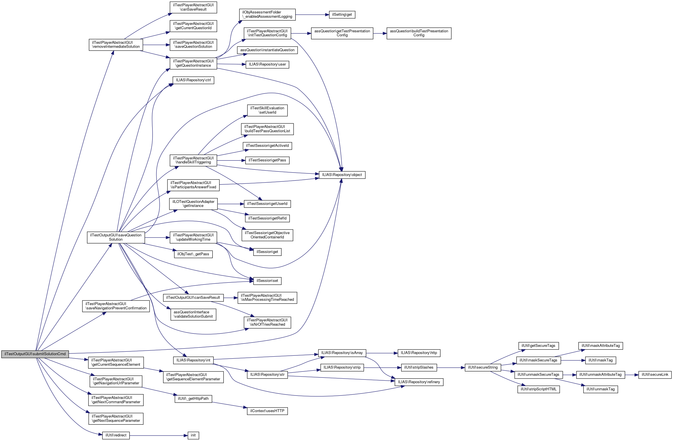 References ILIAS\Repository\ctrl(), ilTestPlayerAbstractGUI\getCurrentSequenceElement(), isValidSequenceElement(), ILIAS\Repository\object(), ilTestPlayerAbstractGUI\removeIntermediateSolution(), saveQuestionSolution(), ilTestPlayerCommands\SHOW_QUESTION, and submitSolutionCmd().